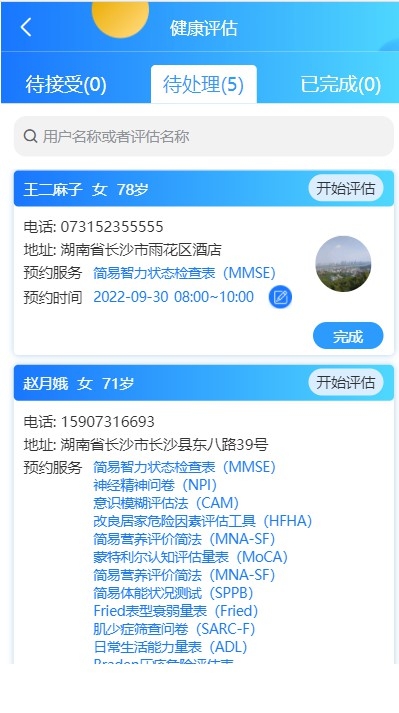 養(yǎng)老綜合評估(CGA)是為中南大學(xué)湘雅醫(yī)院打造的老年健康評估管理系統(tǒng),能夠從多方面、多個(gè)維度對老年人的健康狀態(tài)和功能狀態(tài)進(jìn)行評估分析,從醫(yī)學(xué)問題、軀體和認(rèn)知功能、心理狀態(tài)和社會(huì)支持等多層面對老年患者進(jìn)行全面評估,能夠有針對性的照顧并滿足老年人的保健需求,制定可行的治療干預(yù)策略。